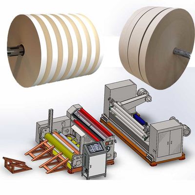 Nhiều lưỡi xẻ rãnh.chiều dài rãnh tối thiểu là 35mm.Bộ phận tua lại được thông qua với trục bơm hơi;cuộn thành phẩm có thể được lấy ra dễ dàng hơn.Phần tua lại có con lăn cong và các cuộn thành phẩm có thể được tách ra tự động.